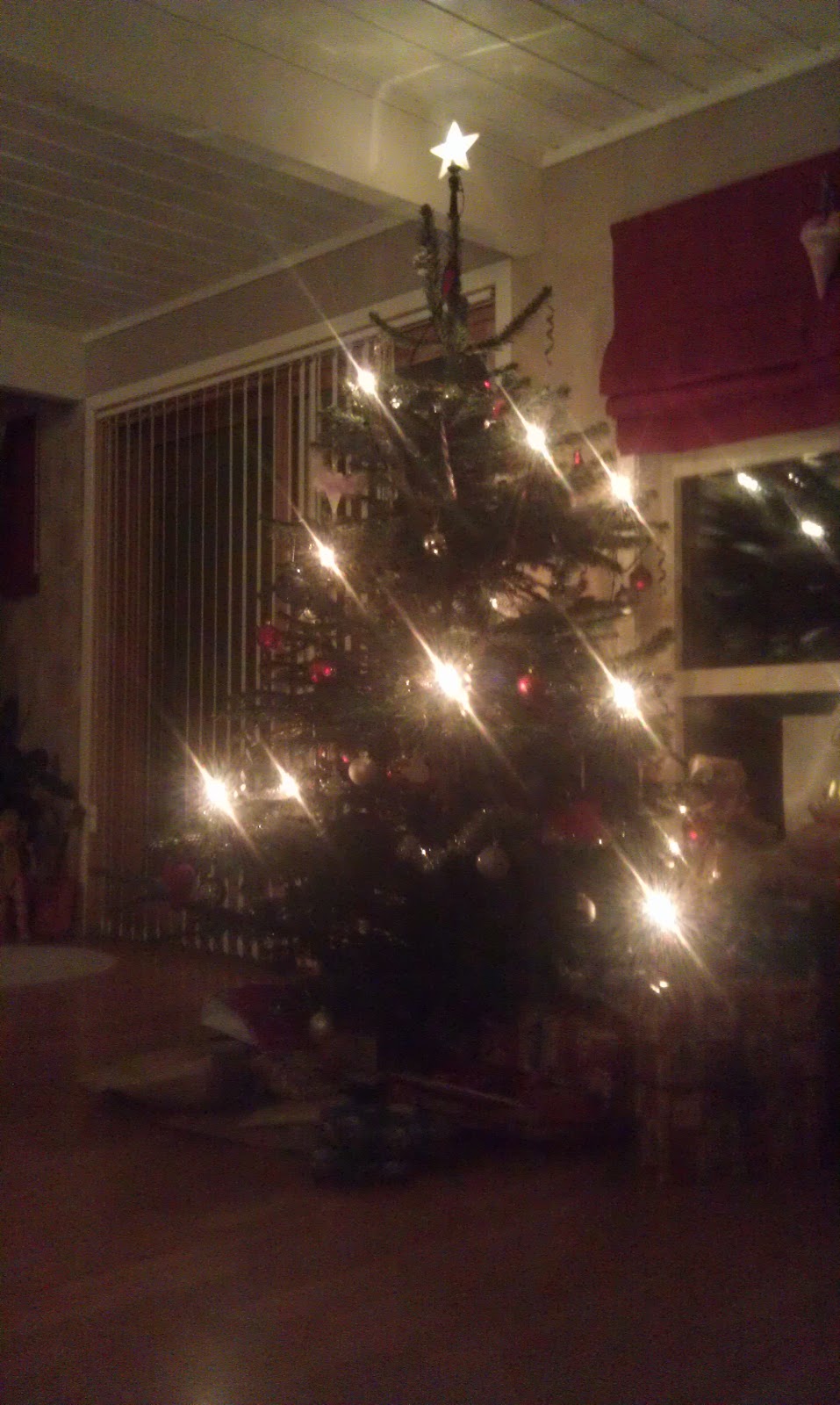 men jeg synes litt av sjarmen er at man kan se at ungene har vært med og pyntet treet.
